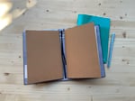 Se si inseriscono inserti da viaggio come tasche trasparenti per documenti e tessere il midori diventa un traveler's notebook, un diario del viaggiatore, dove scrivere i tuoi appunti, conservare ricordi, idee e biglietti vari collezionati durante il viaggio.