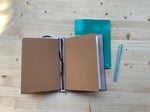 Se si inseriscono inserti da viaggio come tasche trasparenti per documenti e tessere il midori diventa un traveler's notebook, un diario del viaggiatore, dove scrivere i tuoi appunti, conservare ricordi, idee e biglietti vari collezionati durante il viaggio.