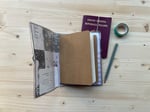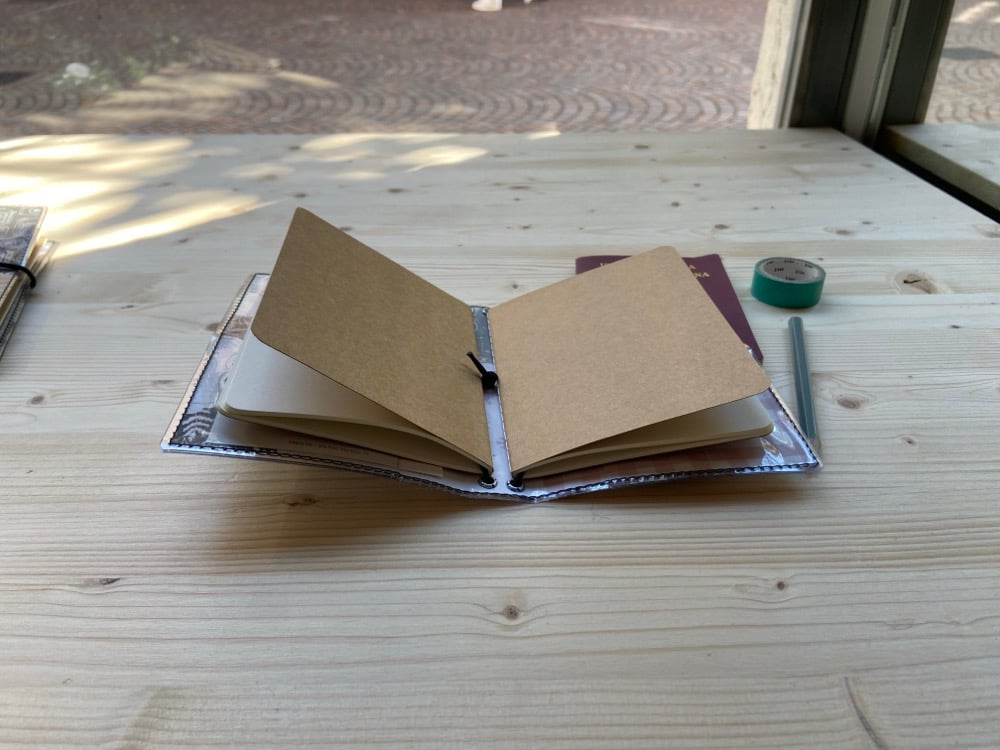 Se si inseriscono inserti da viaggio come tasche trasparenti per documenti e tessere il midori diventa un traveler's notebook, un diario del viaggiatore, dove scrivere i tuoi appunti, conservare ricordi, idee e biglietti vari collezionati durante il viaggio.