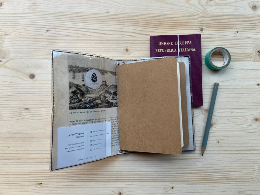Come vedi nell’ultima fotografia, lo puoi abbinare anche a una cover passaporto, magari abbinata, le trovi sempre qui sullo shop online.