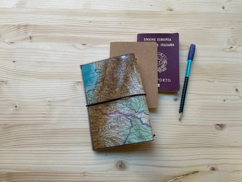 Se si inseriscono inserti da viaggio come tasche trasparenti per documenti e tessere il midori diventa un traveler's notebook, un diario del viaggiatore, dove scrivere i tuoi appunti, conservare ricordi, idee e biglietti vari collezionati durante il viaggio.