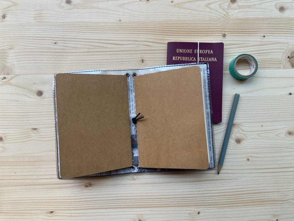 Se si inseriscono inserti da viaggio come tasche trasparenti per documenti e tessere il midori diventa un traveler's notebook, un diario del viaggiatore, dove scrivere i tuoi appunti, conservare ricordi, idee e biglietti vari collezionati durante il viaggio.
