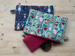 Bustina realizzata con stoffa rinforzata all'interno e fodera, chiusura con zip e anello per moschettone. Da usare come pochette, beauty-case, porta libro, portadocumenti.
