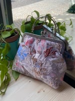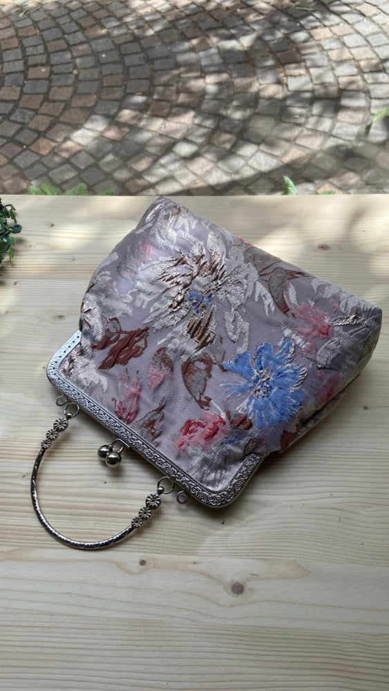Le misure della borsa sono: 25x23 cm circa, più il manico; spessore almeno 6 cm circa. All'interno della chiusura ci sono due ganci a cui si può attaccare la tracolla. Tracolla metallica non compresa, la puoi acquistare qui sul sito.