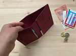 Misure del portafogli da chiuso 9,5 x 14,5 cm; da aperto 20 x 14,5 cm (essendo un prodotto artigianale le misure possono variare di alcuni mm)